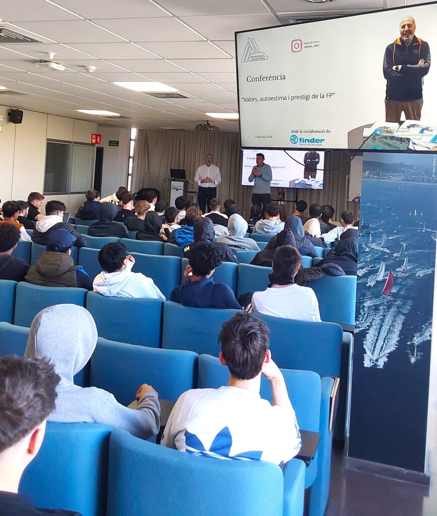 He tingut el privilegi de compartir una estona que no s’oblida fàcilment, amb més de 100 alumnes de GM, GS, FP, PFI i Tècnics Esportius a l’Institut de Nàutica de Barcelona, dins els actes de la “Setmana Blava de l’entitat” amb una conferència sota un títol que resumeix perfectament el missatge que vull transmetre arreu: “Valors, autoestima i prestigi de la Formació Professional”.