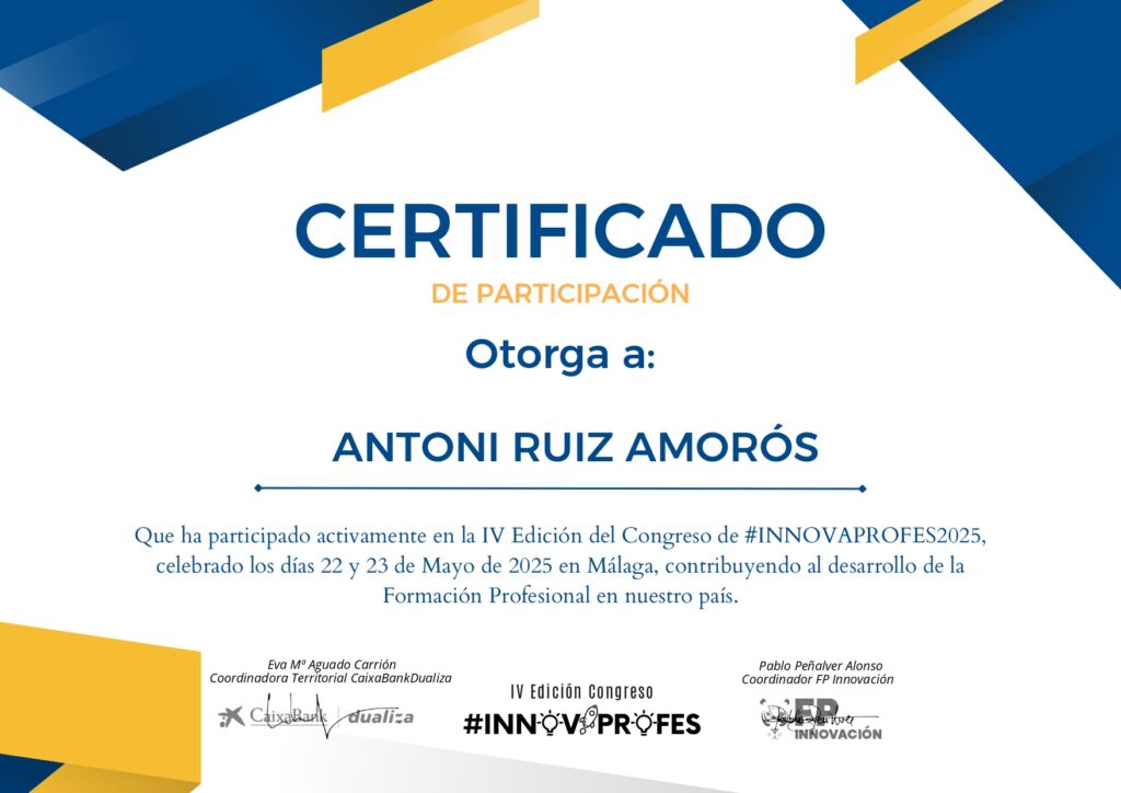 Rebo el diploma de participació al Congrés #INNOVAPROFES2025 celebrat a Màlaga