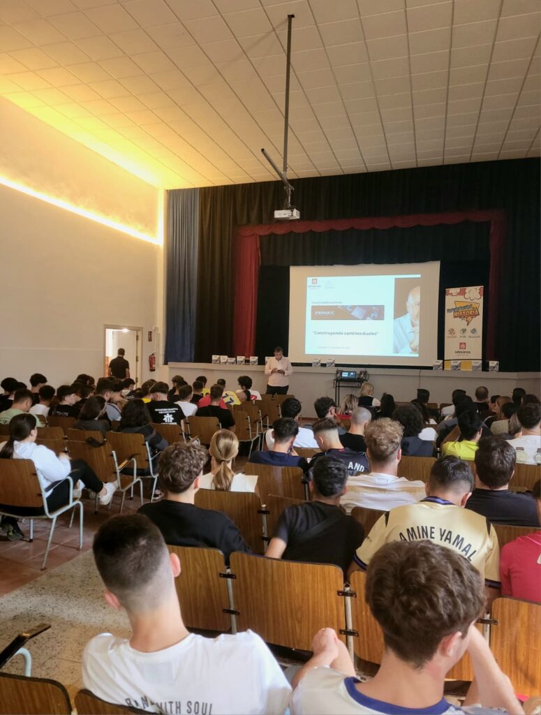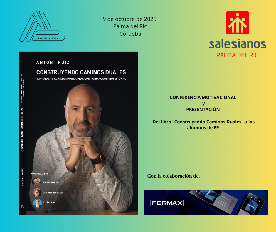 El passat dia 9 d’octubre, vaig tenir el privilegi de compartir una jornada molt especial al Centre de Formació Salesians Palma del Río (Còrdova), on vaig oferir una xerrada motivacional i la presentació del meu llibre “Construint Camins Duals” davant dels alumnes i de les alumnes de Formació Professional de tots els graus.