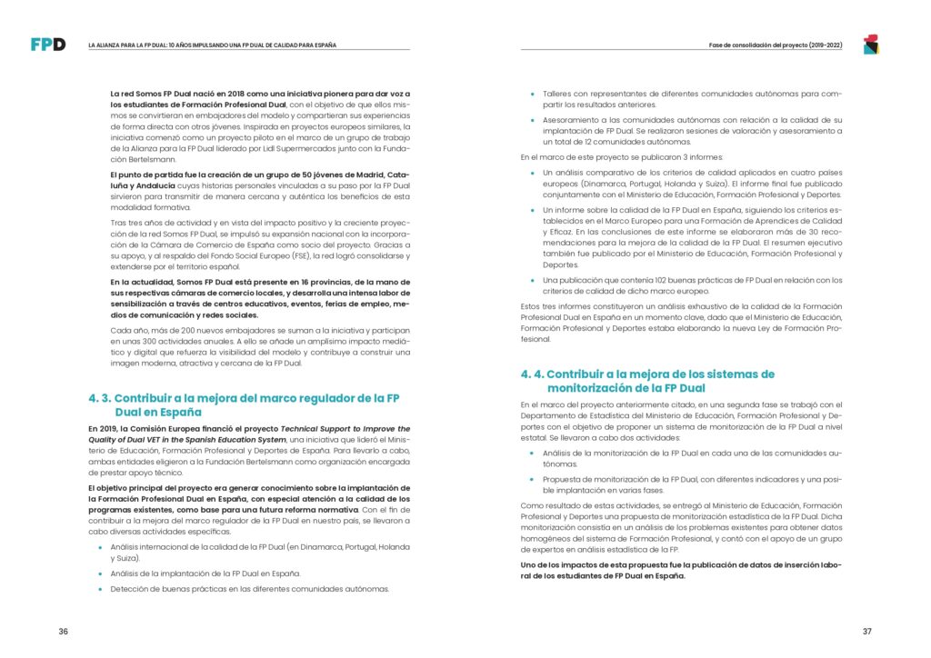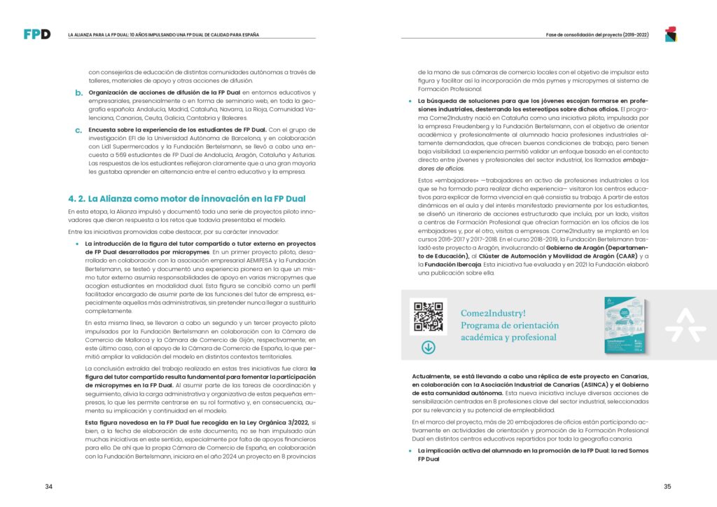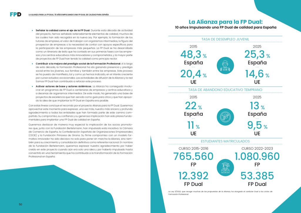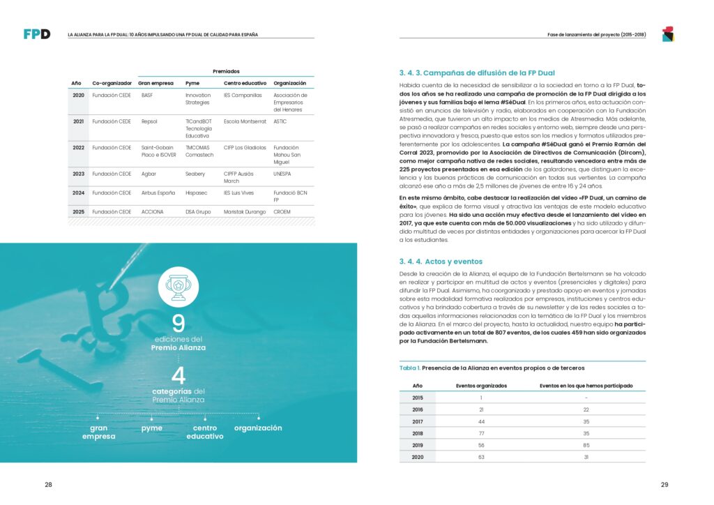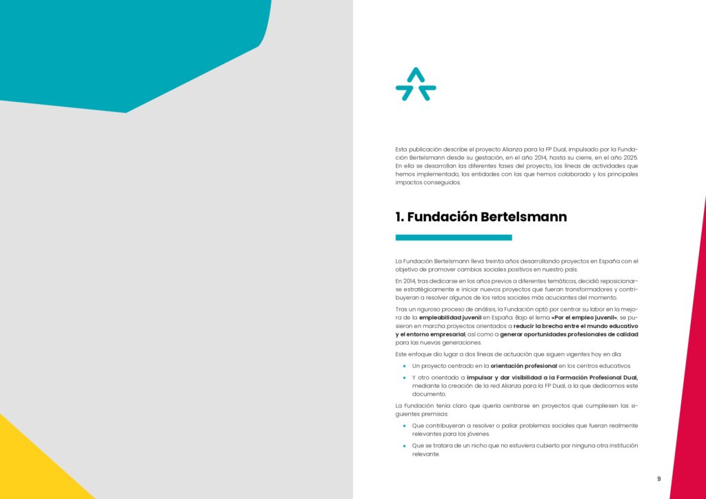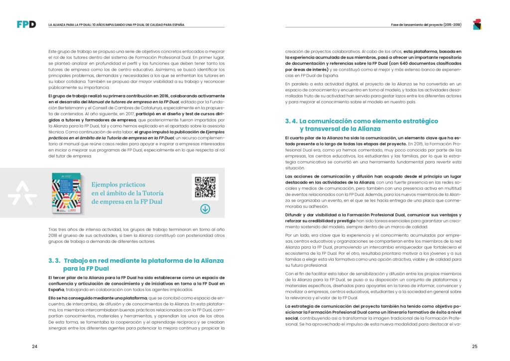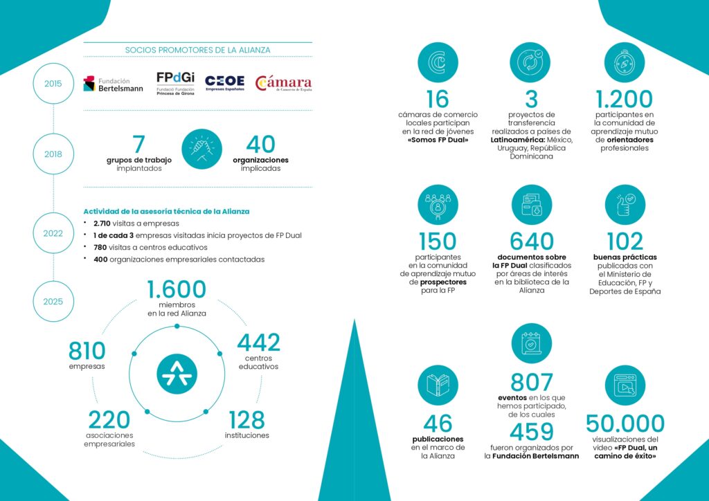 Aquesta publicació descriu el projecte Aliança per a la FP Dual, impulsat per la Fundació Bertelsmann des de la seva gestació, l’any 2014, fins al tancament, l’any 2025. S’hi desenvolupen les diferents fases del projecte, les línies d’activitats que han implementat, les entitats amb què han col·laborat i els principals impactes aconseguits.